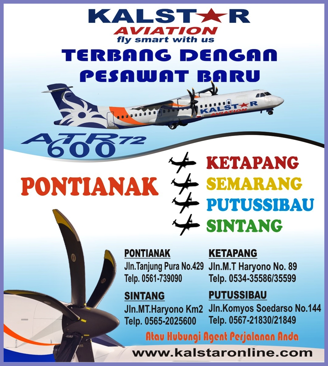 Efektif 5 Februari 15 Pontianak - Makasar Via KTG - PKN - SMQ - BDJ Departure 07.00 wib 0561-739090